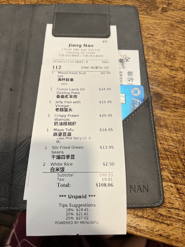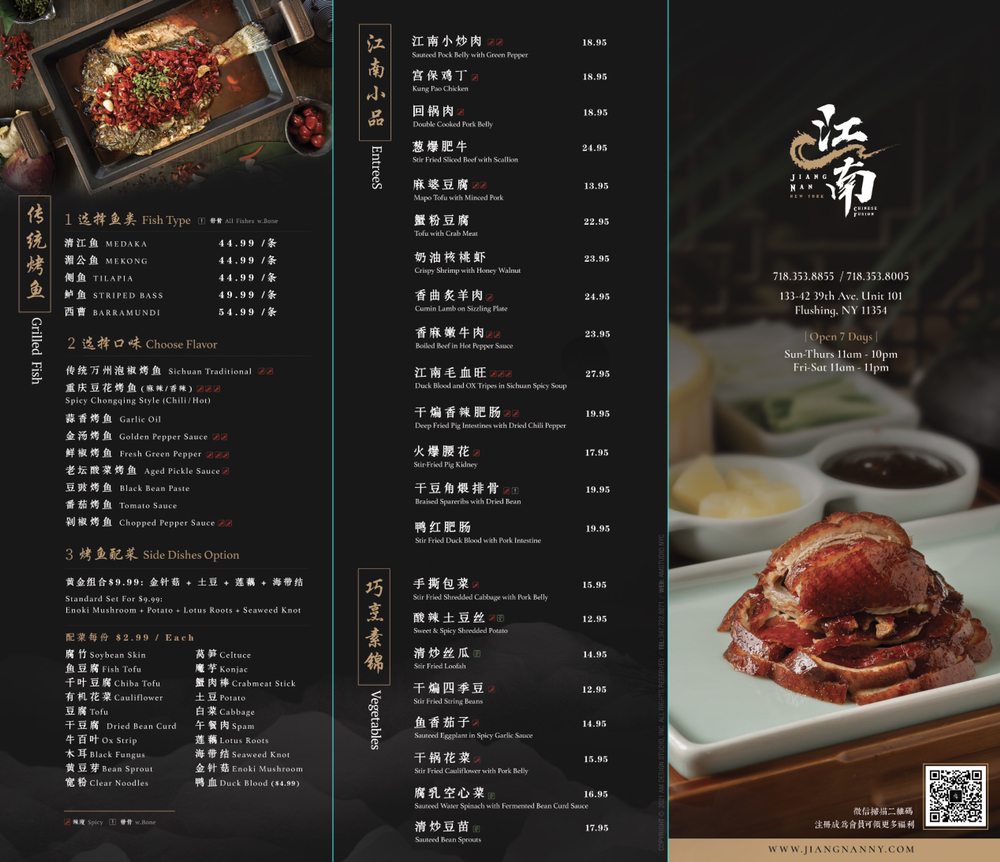 "JiangNan is a classy and upscale Chinese restaurant located in Flushing, NY, offering a variety of vegan and limited vegetarian options. With a focus on quality and authenticity, the menu features dishes like the whole Peking Duck, praised for its excellence and flavor. Customers rave about the friendly service and quick food delivery. The ambiance is described as elegant and reminiscent of ancient China, making it a perfect spot for family-style dinners. Although prices are on the higher end, the experience and taste are well worth it. Notable dishes include the sweet and sour striped fish and sautéed string beans, along with the must-order Peking duck. Reservations are recommended for larger groups or weekend visits. Overall, JiangNan provides a top-tier dining experience that will impress both locals and out-of-town guests."